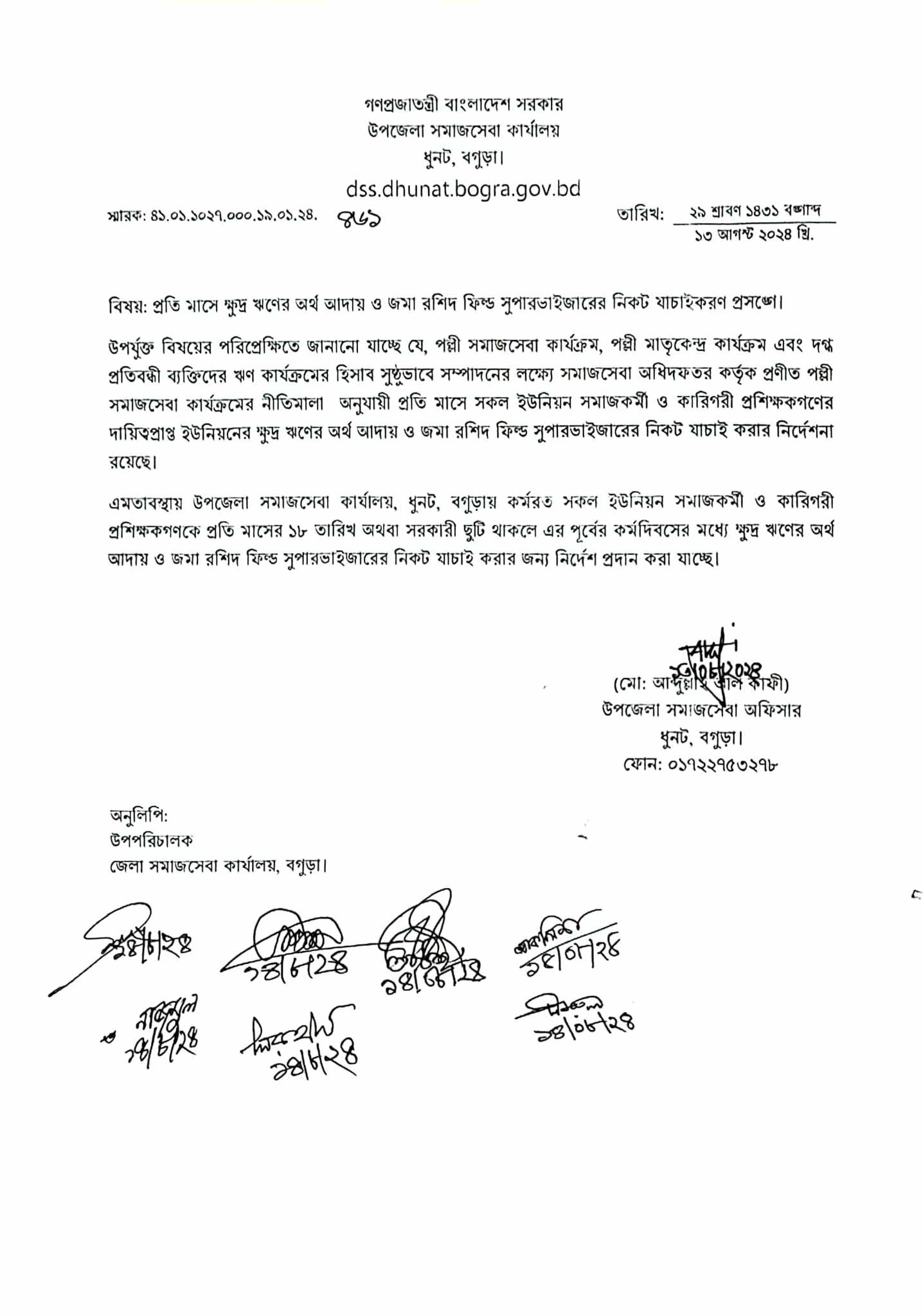 | ৭ | ক্ষুদ্র ঋণের অর্থ আদায় ও জমা রশিদ ফিল্ড সুপারভাইজারের নিকট যাচাইকরণ প্রসঙ্গে | | | ১৩-০৮-২০২৪ | দেখুন |